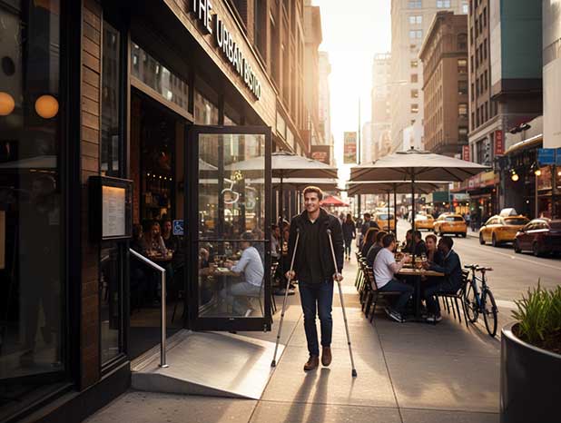 It is more than a ramp: parking proximity, entrance design, aisle spacing, table height, and restroom layout all shape whether a meal is comfortable or stressful for anyone using mobility aids.